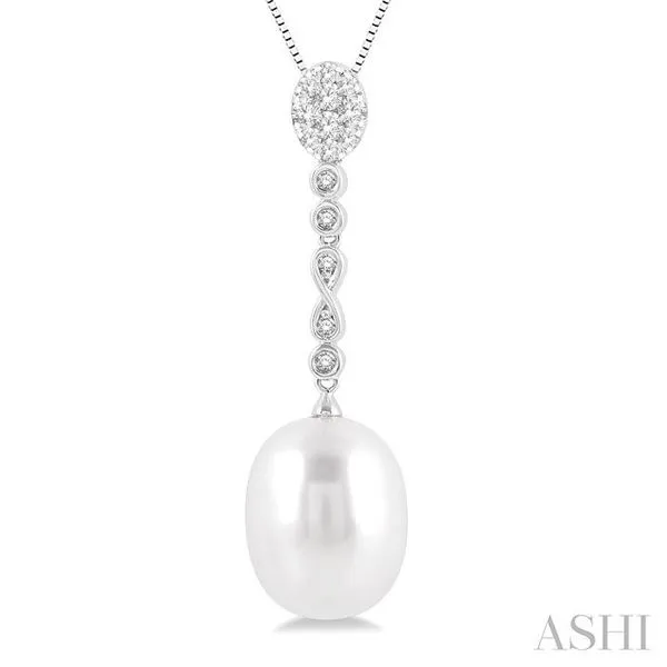 12x10 MM Cultured Pearl and 1/5 Ctw Hanging Round Cut Diamond Drop Lovebright Pendant With Chain in 14K White Gold Adler's Diamonds Saint Louis, MO