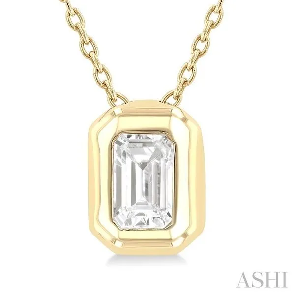 1/3 Ctw Bezel Set Emerald Cut Diamond Bubble Fashion Pendant With Chain in 14K Yellow Gold Adler's Diamonds Saint Louis, MO