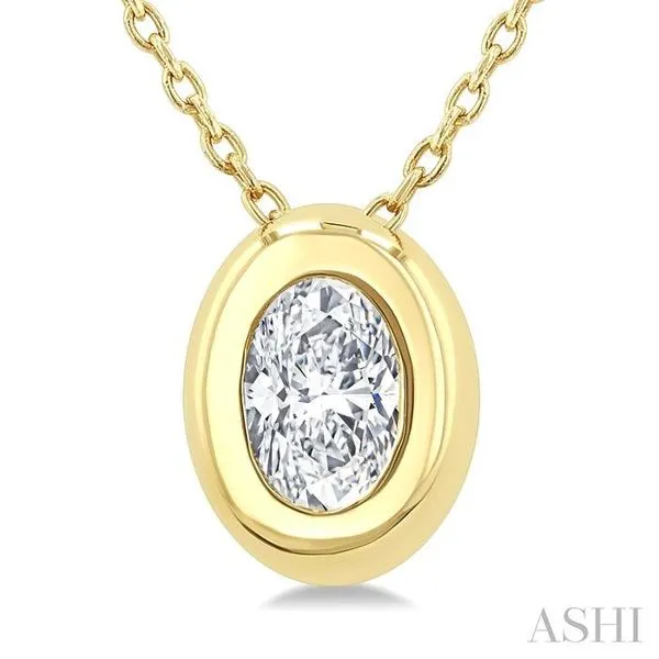 1/3 Ctw Bezel Set Oval Cut Diamond Bubble Fashion Pendant With Chain in 14K Yellow Gold Image 3 Adler's Diamonds Saint Louis, MO