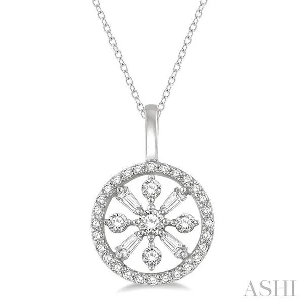 1/3 Ctw Circle Baguette and Round Cut Diamond Fashion Pendant With Chain in 14K White Gold Adler's Diamonds Saint Louis, MO