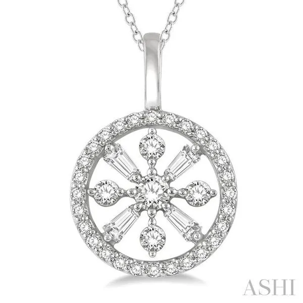 1/3 Ctw Circle Baguette and Round Cut Diamond Fashion Pendant With Chain in 14K White Gold Image 2 Adler's Diamonds Saint Louis, MO