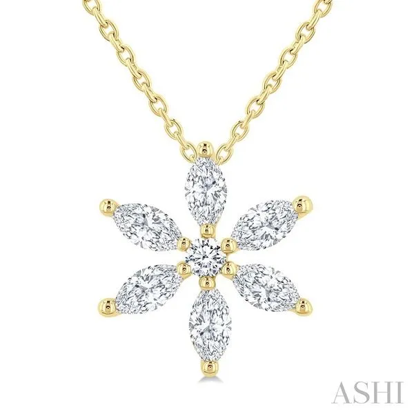 1/3 Ctw Floral Motif Marquise and Round Cut Diamond Fashion Pendant With Chain in 14K Yellow Gold Adler's Diamonds Saint Louis, MO