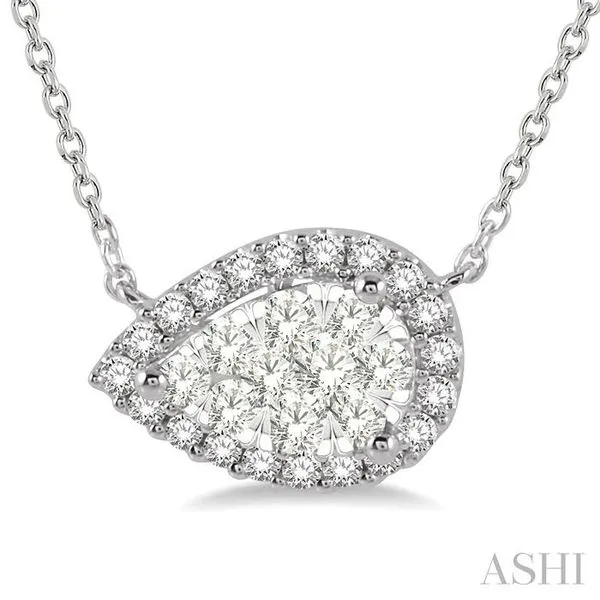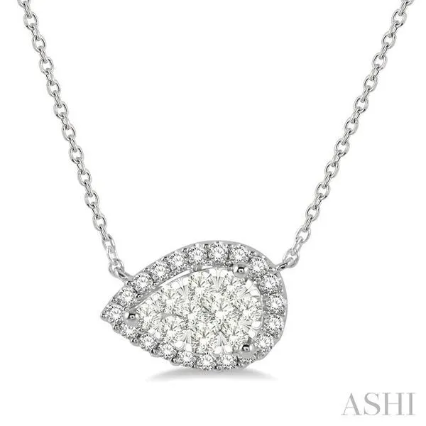 1/3 Ctw Pear Shape Round Cut Diamond Lovebright Pendant With Chain in 14K White Gold Image 2 Adler's Diamonds Saint Louis, MO