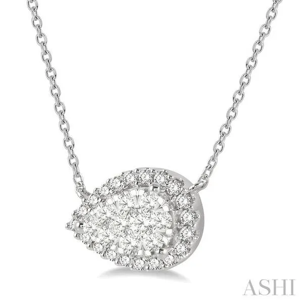 1/3 Ctw Pear Shape Round Cut Diamond Lovebright Pendant With Chain in 14K White Gold Image 4 Adler's Diamonds Saint Louis, MO