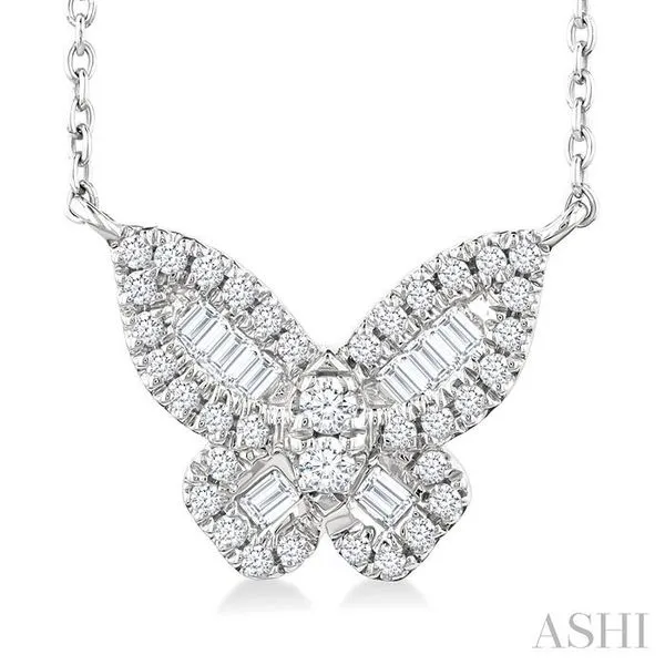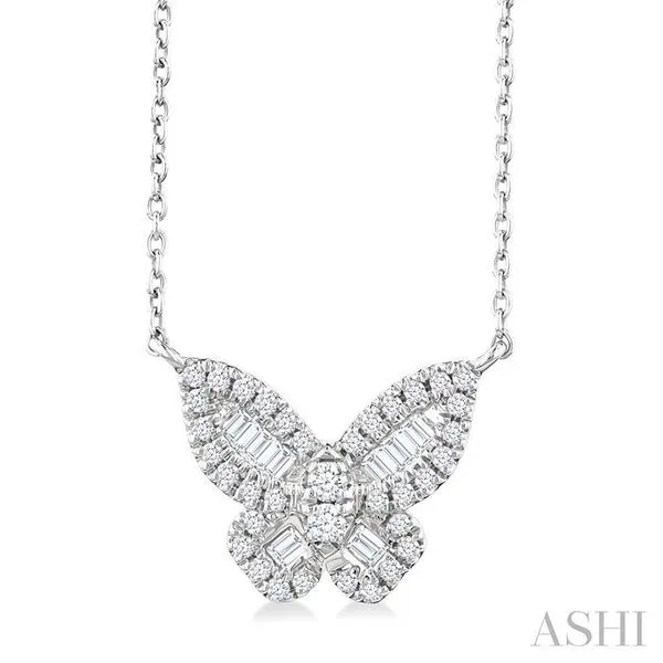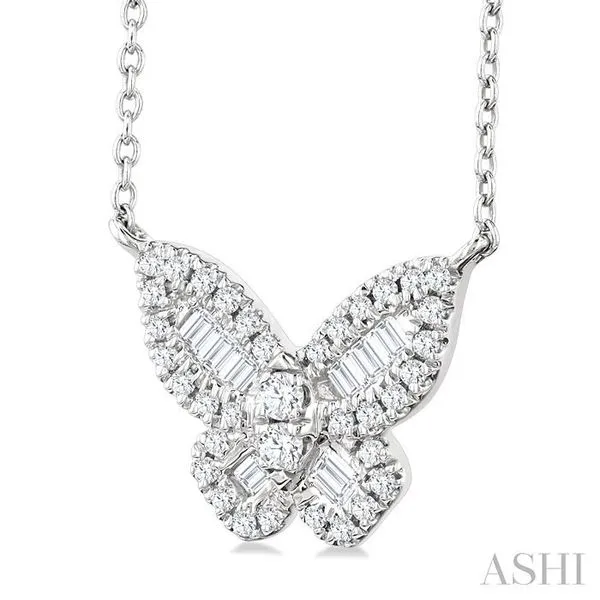 1/3 Ctw Petite Butterfly Baguette and Round Cut Diamond Fashion Pendant With Chain in 10K White Gold Adler's Diamonds Saint Louis, MO