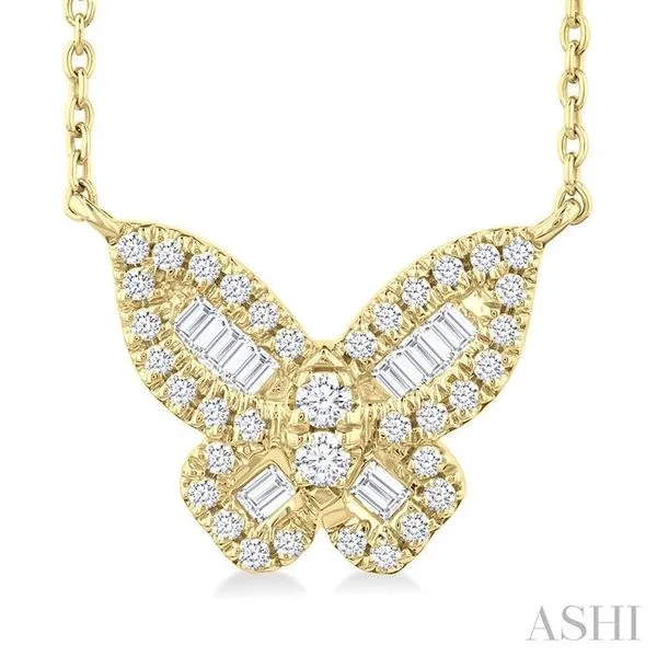 1/3 Ctw Petite Butterfly Baguette and Round Cut Diamond Fashion Pendant With Chain in 10K Yellow Gold Adler's Diamonds Saint Louis, MO