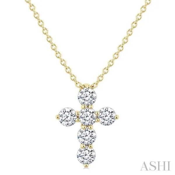 1/3 Ctw Round Cut Diamond Christian Cross 6-Stone Fashion Pendant With Chain in 14K Yellow Gold Image 3 Adler's Diamonds Saint Louis, MO