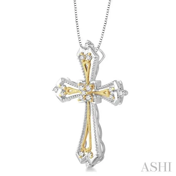 1/3 Ctw Round Cut Diamond Cross Pendant in 14K White and Yellow Gold with Chain Image 4 Adler's Diamonds Saint Louis, MO