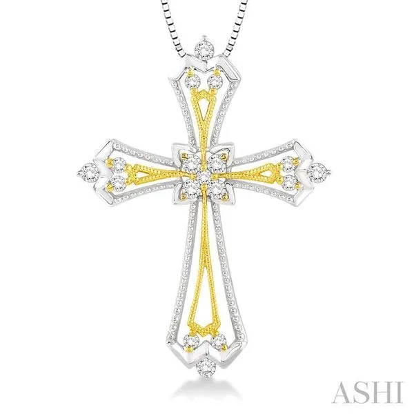1/3 Ctw Round Cut Diamond Cross Pendant in 14K White and Yellow Gold with Chain Image 2 Adler's Diamonds Saint Louis, MO