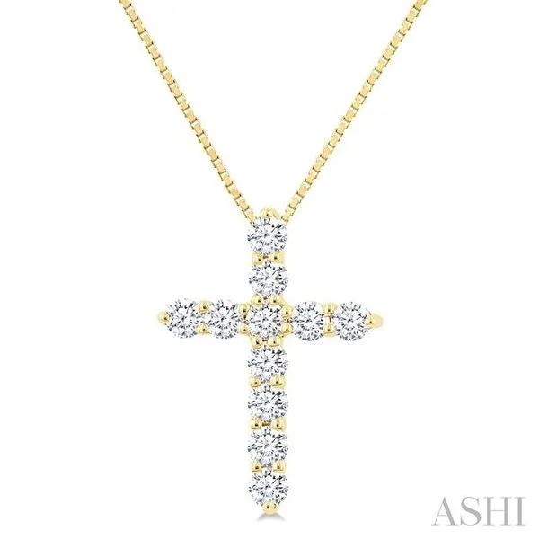 1/3 Ctw Round Cut Diamond Cross Pendant in 14K Yellow Gold with Chain Image 3 Adler's Diamonds Saint Louis, MO