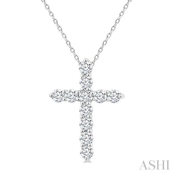 1/3 Ctw Round Cut Diamond Cross Pendant With Chain in 14K White Gold Image 3 Adler's Diamonds Saint Louis, MO
