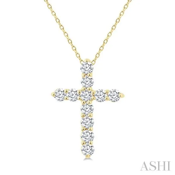 1/3 Ctw Round Cut Diamond Cross Pendant With Chain in 14K Yellow Gold Image 3 Adler's Diamonds Saint Louis, MO