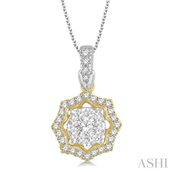 1/3 Ctw Star Lattice Lovebright Round Cut Diamond Pendant With Chain in 14K White and Yellow Gold Image 2 Adler's Diamonds Saint Louis, MO