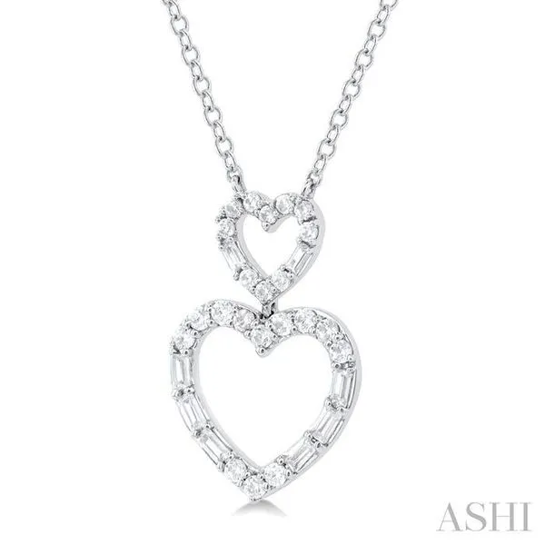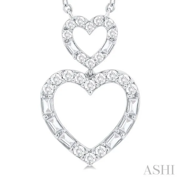 1/3 Ctw Twin Heart Fusion Baguette and Round Cut Diamond Pendant With Chain in 10K White Gold Image 3 Adler's Diamonds Saint Louis, MO