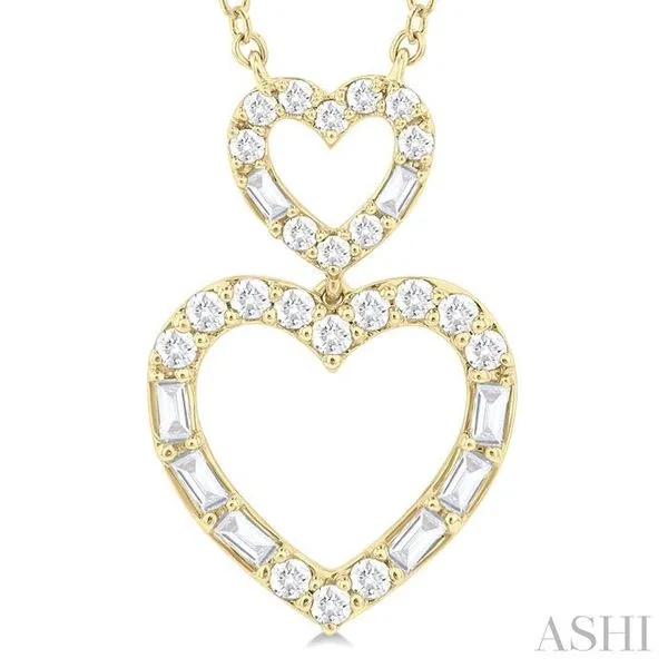 1/3 Ctw Twin Heart Fusion Baguette and Round Cut Diamond Pendant With Chain in 10K Yellow Gold Image 2 Adler's Diamonds Saint Louis, MO