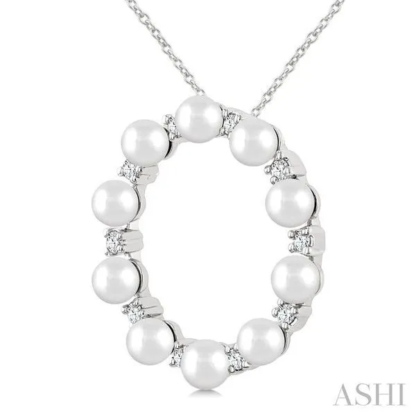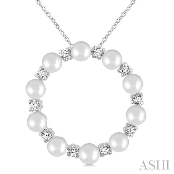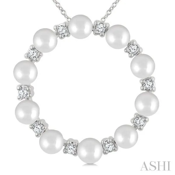1/4 Ctw 4MM White Pearl and Round Cut Diamond Circle Fashion Pendant With Chain in 14K White Gold Image 2 Adler's Diamonds Saint Louis, MO