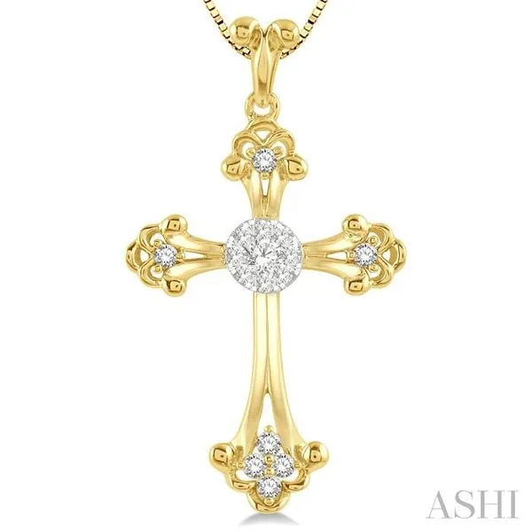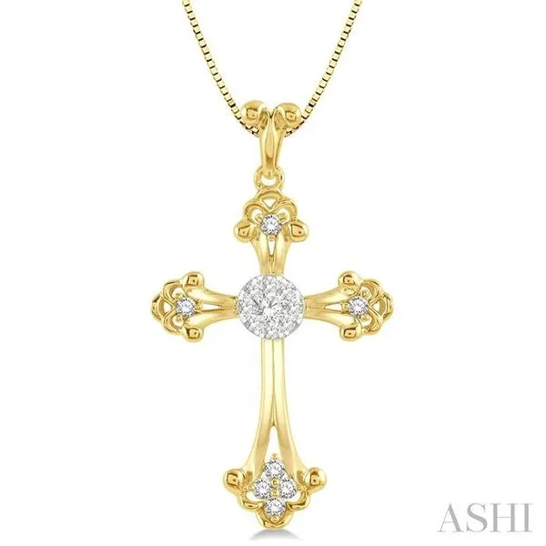 1/4 Ctw Art Deco Lovebright Round Cut Diamond Cross Pendant in 14K Yellow and White Gold with chain Image 4 Adler's Diamonds Saint Louis, MO