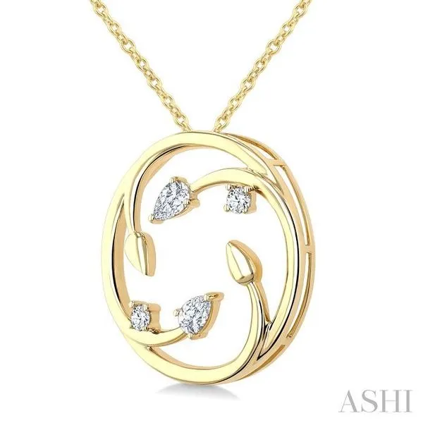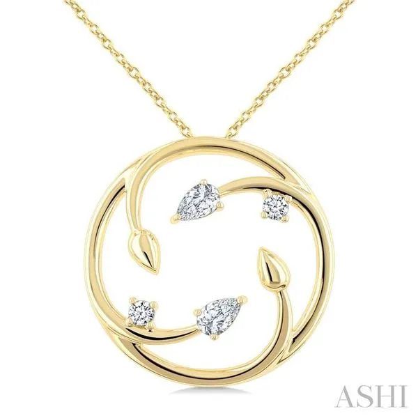 1/4 Ctw Branched Leaf Pear and Round Cut Diamond Circle Fashion Pendant With Chain in 14K Yellow Gold Image 2 Adler's Diamonds Saint Louis, MO