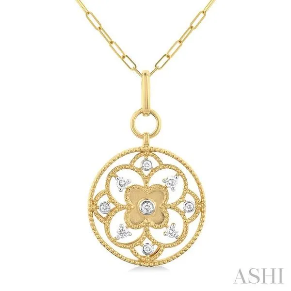 1/4 Ctw Circle Floral Carving Round Cut Diamond Fashion Pendant With Paperclip Chain in 14K Yellow Gold Image 2 Adler's Diamonds Saint Louis, MO