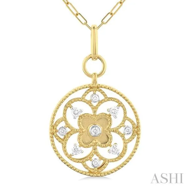 1/4 Ctw Circle Floral Carving Round Cut Diamond Fashion Pendant With Paperclip Chain in 14K Yellow Gold Image 4 Adler's Diamonds Saint Louis, MO