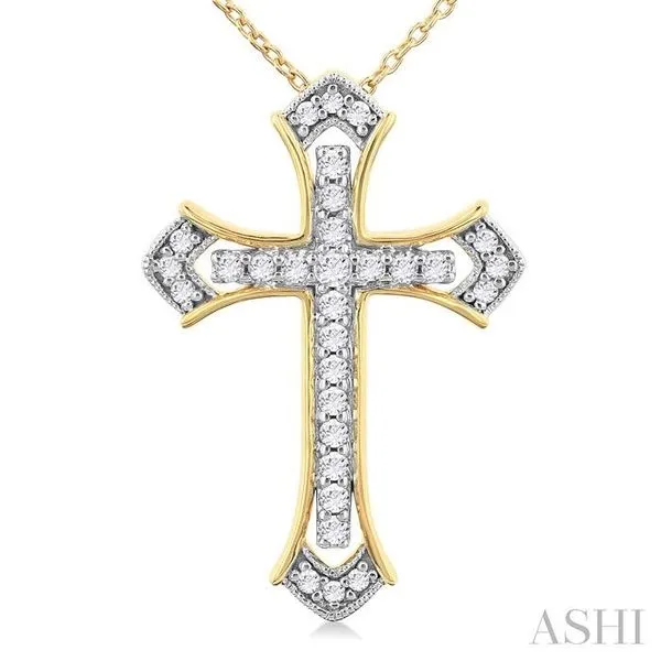 1/4 Ctw Cross Round Cut Diamond Fashion Pendant With Chain in 14K Yellow and White Gold Image 3 Adler's Diamonds Saint Louis, MO