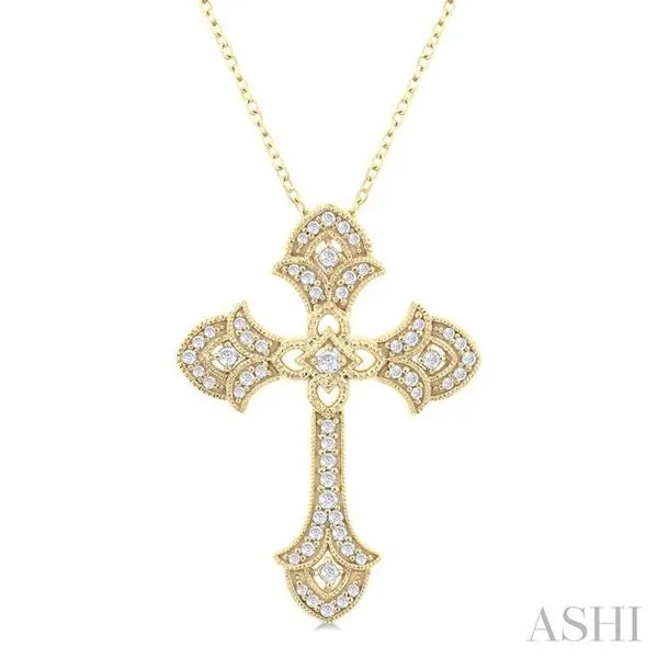 1/4 Ctw Cross Round Cut Diamond Fashion Pendant With Chain in 14K Yellow Gold Image 3 Adler's Diamonds Saint Louis, MO