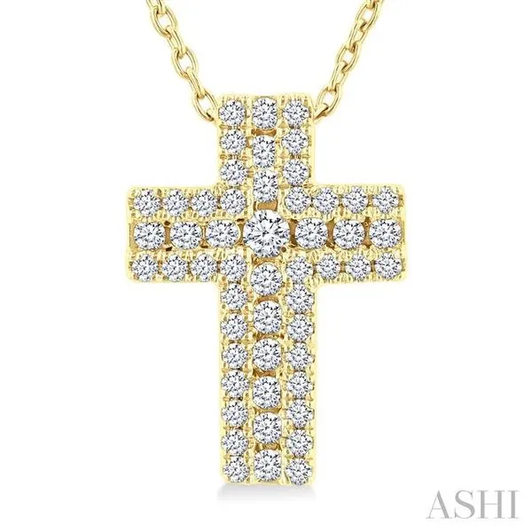 1/4 Ctw Cross Round Cut Diamond Fashion Pendant With Chain in 14K Yellow Gold Image 3 Adler's Diamonds Saint Louis, MO