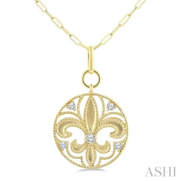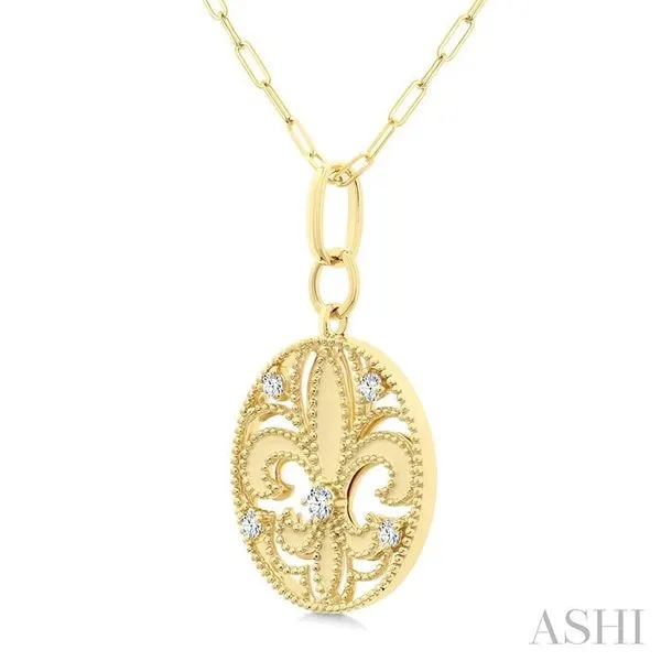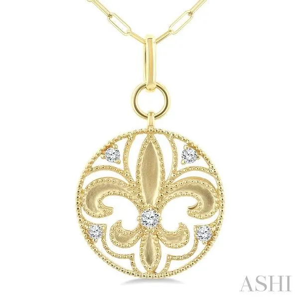 1/4 Ctw Fleur De Lis Round Cut Diamond Fashion Medallion Pendant With Chain in 14K Yellow Gold Image 3 Adler's Diamonds Saint Louis, MO