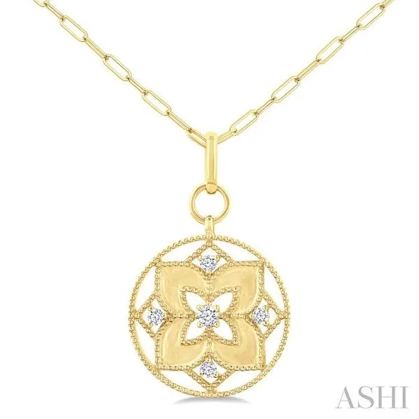 1/4 Ctw Floral Medallion Circle Round Cut Diamond Fashion Pendant With Paperclip Chain in 14K Yellow Gold Image 2 Adler's Diamonds Saint Louis, MO