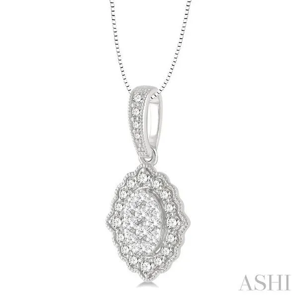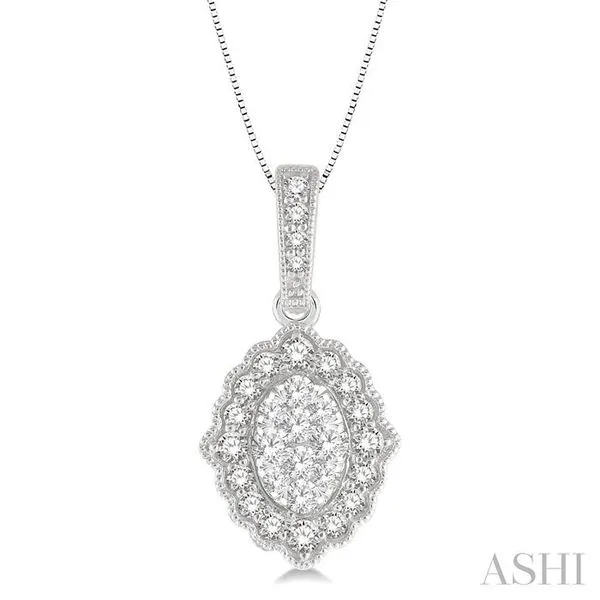 1/4 Ctw Lattice Edge Oval Shape Lovebright Round Cut Diamond Pendant With Chain in 14K White Gold Image 2 Adler's Diamonds Saint Louis, MO