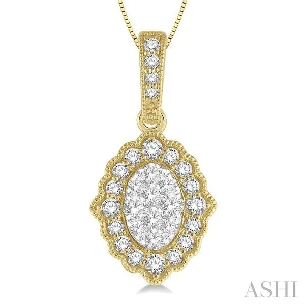 1/4 Ctw Lattice Edge Oval Shape Lovebright Round Cut Diamond Pendant With Chain in 14K Yellow and White Gold Image 2 Adler's Diamonds Saint Louis, MO
