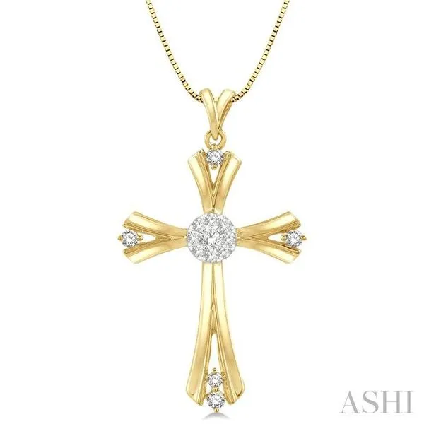 1/4 Ctw Lovebright Round Cut Diamond Cross Pendant in 14K Yellow and White Gold with chain Image 4 Adler's Diamonds Saint Louis, MO