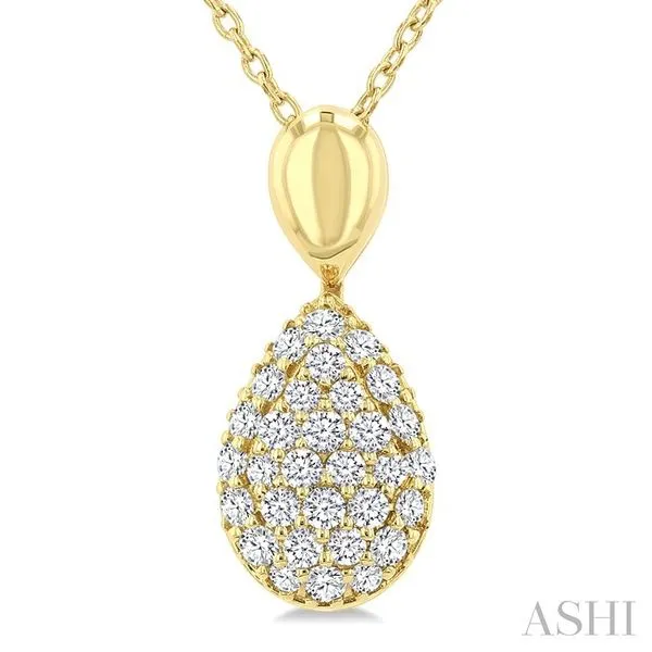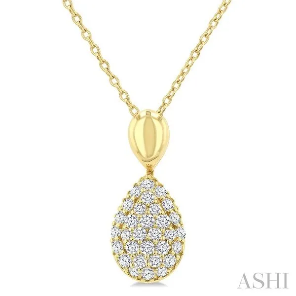 3. 1/4 Ctw Pear Shape Pave Set Single Cut Diamond Fashion Pendant With Chain in 10K Yellow Gold