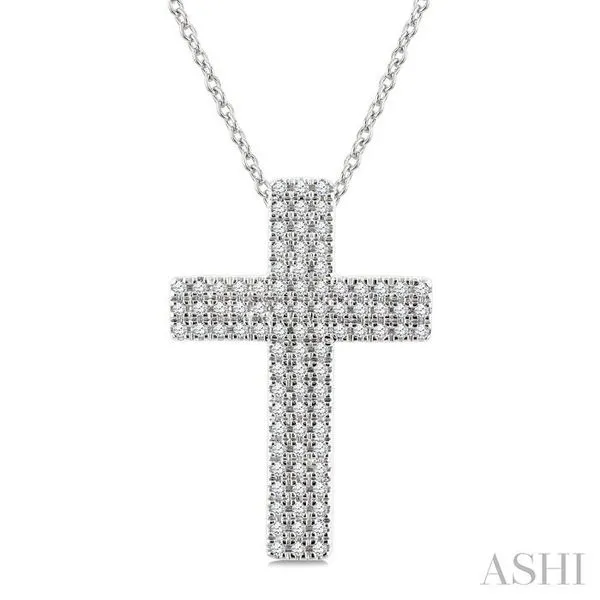 1/4 Ctw Roman Cross Triple Row Round Cut Diamond Fashion Pendant With Chain in 10K White Gold Image 3 Adler's Diamonds Saint Louis, MO