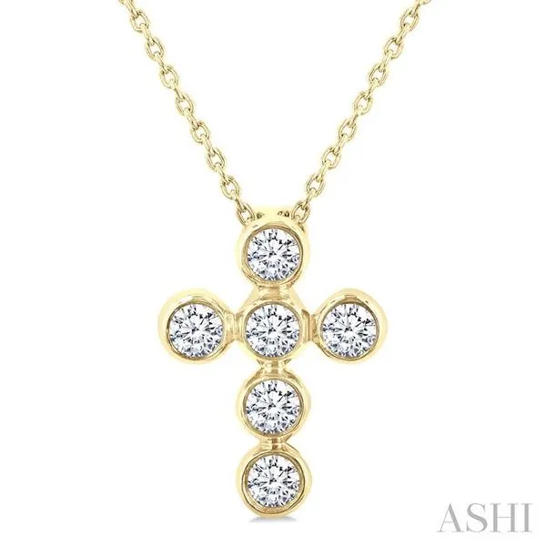 1/4 Ctw Round Cut Diamond 6-Stone Bezel Set Cross Pendant With Chain in 14K Yellow Gold Image 3 Adler's Diamonds Saint Louis, MO