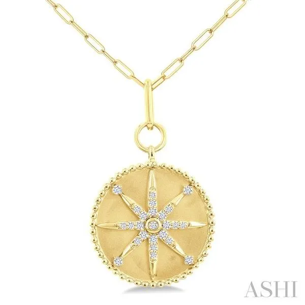 1/4 Ctw Round Cut Diamond Compass Symbol Circle Medallion Fashion Pendant With Paperclip Chain in 14K Yellow Gold Image 3 Adler's Diamonds Saint Louis, MO