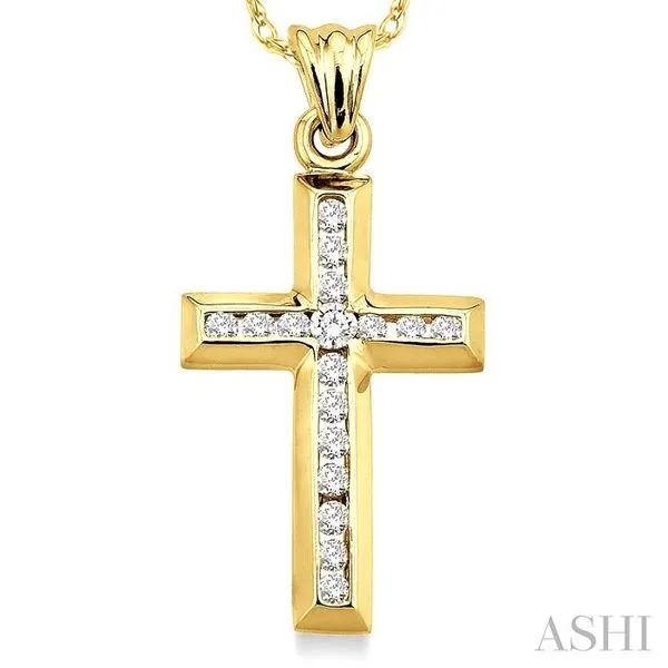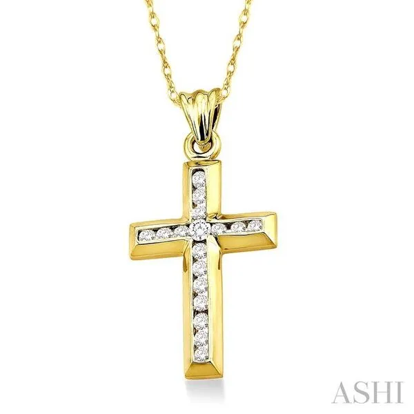 1/4 Ctw Round Cut Diamond Cross Pendant in 10K Yellow Gold with Chain Image 4 Adler's Diamonds Saint Louis, MO