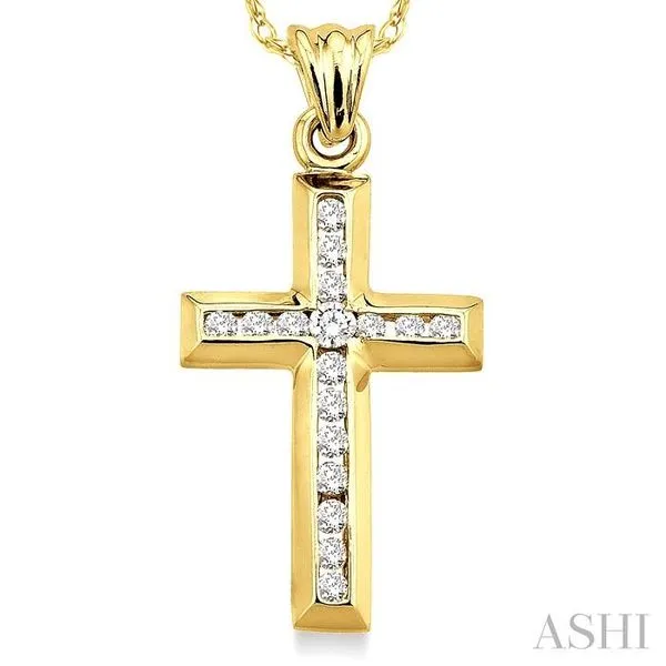 1/4 Ctw Round Cut Diamond Cross Pendant in 14K Yellow Gold with Chain Image 2 Adler's Diamonds Saint Louis, MO