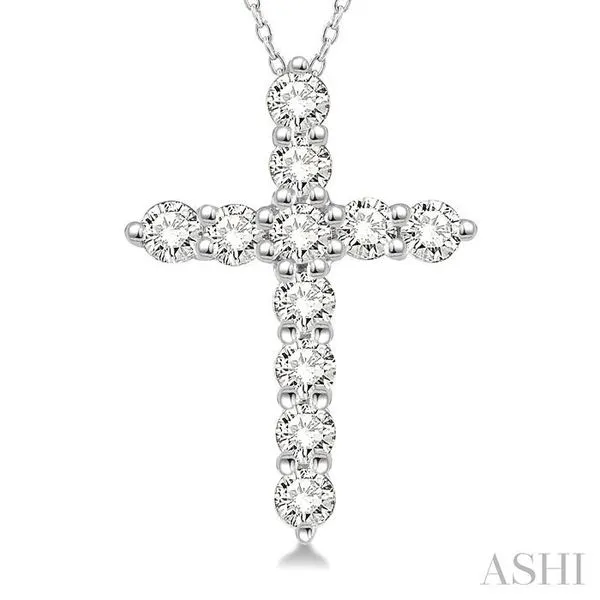 1/4 Ctw Round Cut Diamond Cross Pendant With Chain in 14K White Gold Image 3 Adler's Diamonds Saint Louis, MO