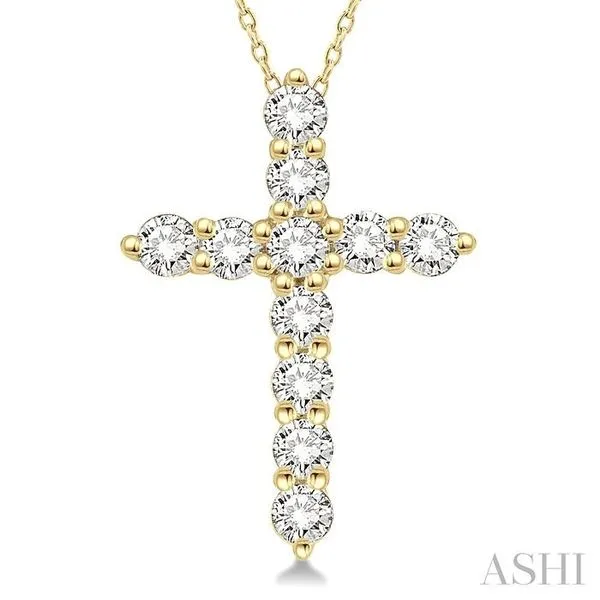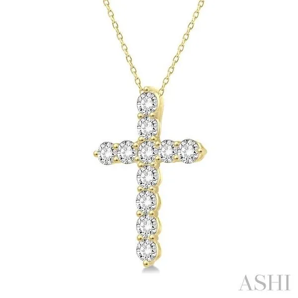 1/4 Ctw Round Cut Diamond Cross Pendant With Chain in 14K Yellow Gold Image 2 Adler's Diamonds Saint Louis, MO