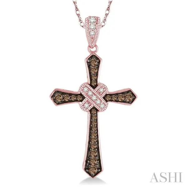 1/4 Ctw Round Cut White and Champagne Brown Diamond Cross Pendant in 10K Rose Gold with Chain Image 2 Adler's Diamonds Saint Louis, MO