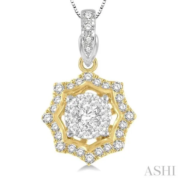 1/4 Ctw Star Lattice Lovebright Round Cut Diamond Pendant With Chain in 14K White and Yellow Gold Image 2 Adler's Diamonds Saint Louis, MO