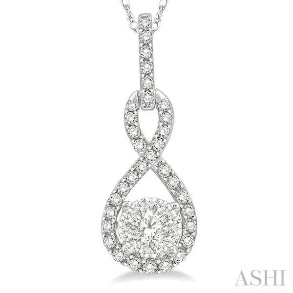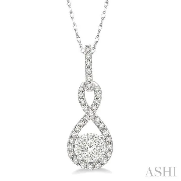 3. 1/4 Ctw Winding Round Cut Diamond Lovebright Pendant With Link Chain in 14K White Gold