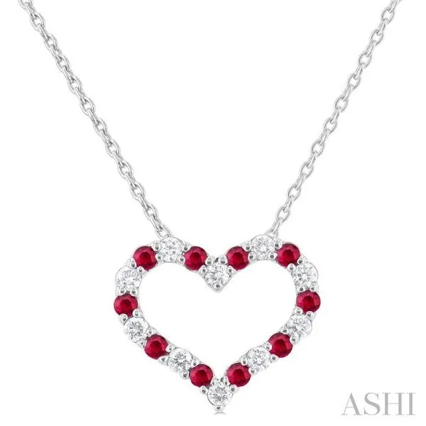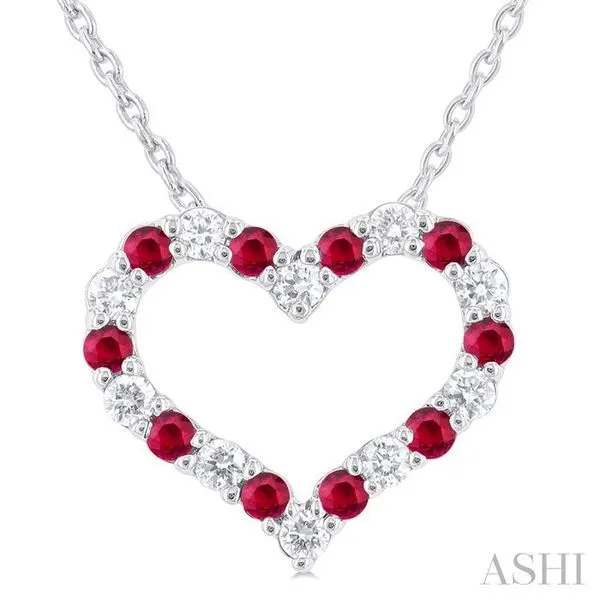 1.4 MM Round Cut Ruby and 1/8 Ctw Open Heart Round Cut Diamond Precious Fashion Pendant With Chain in 14K White Gold Image 2 Adler's Diamonds Saint Louis, MO