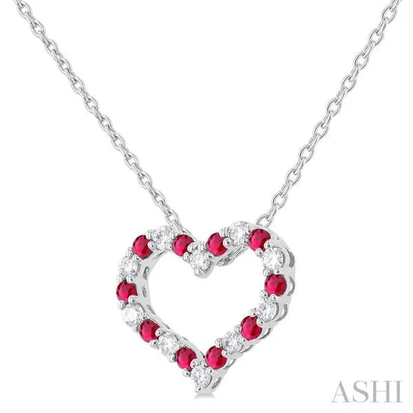 1.4 MM Round Cut Ruby and 1/8 Ctw Open Heart Round Cut Diamond Precious Fashion Pendant With Chain in 14K White Gold Adler's Diamonds Saint Louis, MO