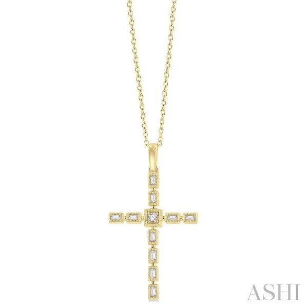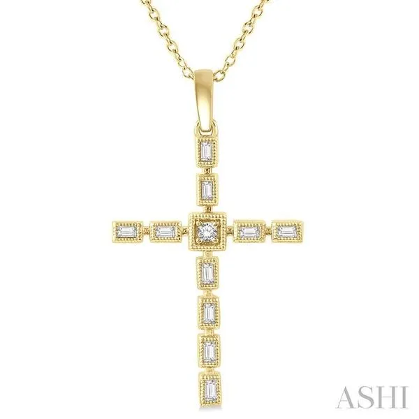 1/5 Ctw Baguette and Round Cut Diamond Cross Pendant With Chain in 10K Yellow Gold Image 3 Adler's Diamonds Saint Louis, MO