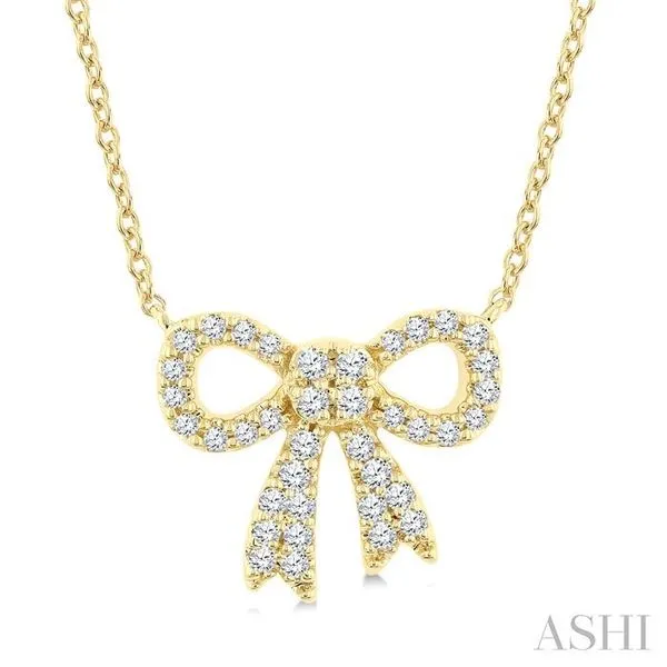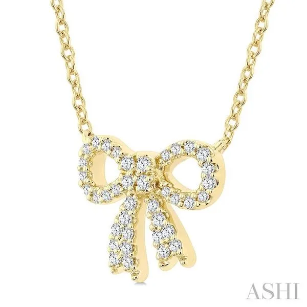 1/5 Ctw Bow Round Cut Diamond Petite Fashion Pendant With Chain in 10K Yellow Gold Image 2 Adler's Diamonds Saint Louis, MO