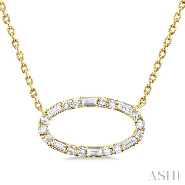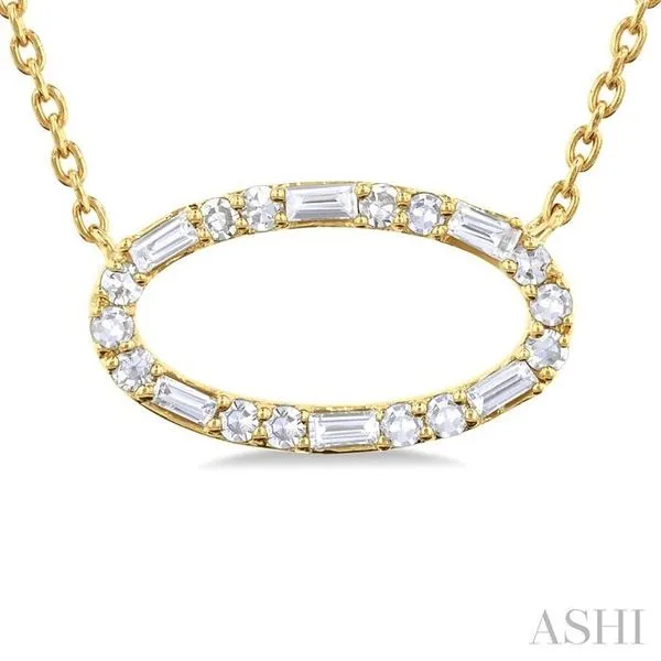 1/5 Ctw East-West Oval Shape Fusion Baguette and Round cut Diamond Pendant With Chain in 10K Yellow Gold Image 3 Adler's Diamonds Saint Louis, MO