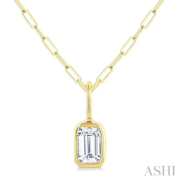 1/5 Ctw Emerald Cut Bezel Set Diamond Fashion Pendant With Paperclip Chain in 14K Yellow Gold Adler's Diamonds Saint Louis, MO