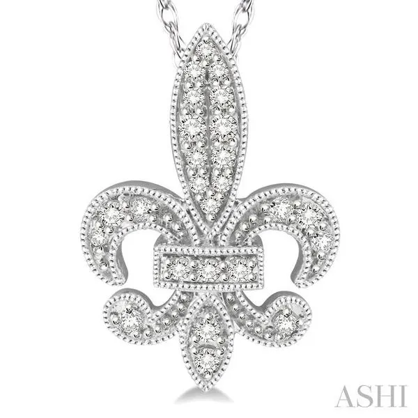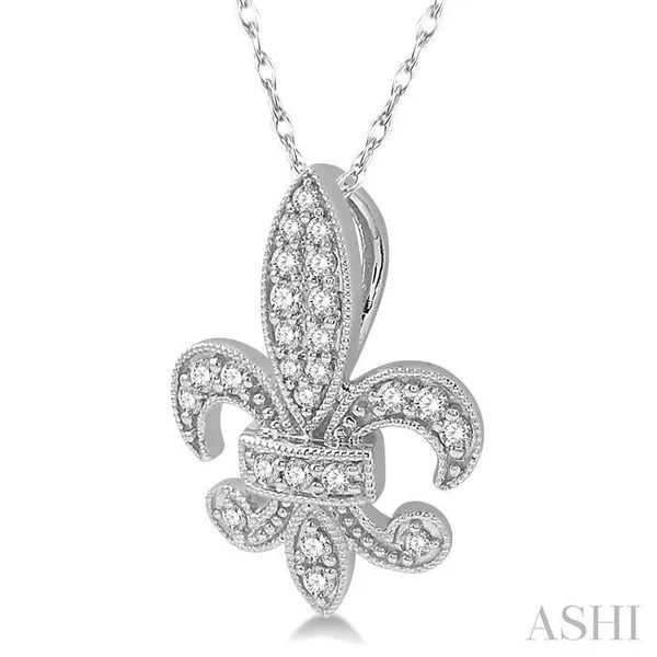 1/5 Ctw Fleur De Lis Round Cut Diamond Pendant With Link Chain in 10K White Gold Image 4 Adler's Diamonds Saint Louis, MO